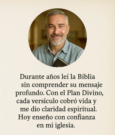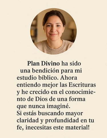 PLAN DIVINO es un material exclusivo que te guía paso a paso por las Escrituras, desde el Génesis hasta los fundamentos prácticos de la vida cristiana.