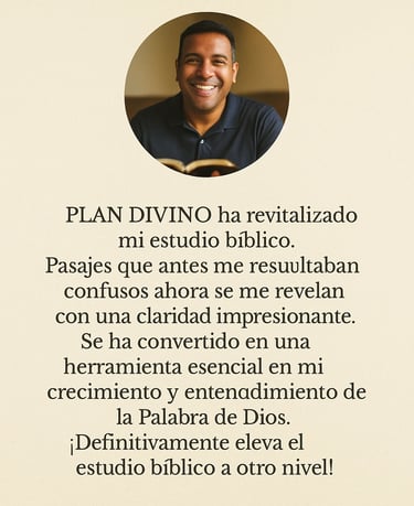 Muchos creyentes luchan con la falta de disciplina y claridad. Intentan leer la Biblia pero se frustran por no saber cómo entenderla o aplicarla. PLAN DIVINO es la guía visual que te toma de la mano y te acompaña a través de cada etapa del conocimiento bíblico.